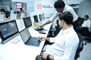 మొంథా తుఫాను తీవ్రతపై సచివాలయంలోని ఆర్టీజీఎస్ కేంద్రం నుంచి సమీక్షిస్తున్న మంత్రి లోకేష్