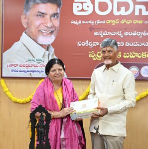 అమరావతి: సంగీతం, సాహిత్యం, సంస్కృతి భారతీయ సంపదకు మూలాలు అని ముఖ్యమంత్రి చంద్రబాబు నాయుడు అన్నారు. కళాకారుల ద్వారా అన్నమయ్య కీర్తలను ప్రజలకు చేరువు చేస్తున్న డాక్టర్ శోభారాజు కార్యక్రమాలకు తమ సహకారం ఎప్పుడూ ఉంటుందని అన్నారు. అన్నమయ్య అంతర్జాతీయ సంకీర్తన పోటీలు ”తందనానా – 2025”లో విజేతలైన ముగ్గురు గాయనీ గాయకులకు ముఖ్యమంత్రి బంగారు పతకాలను బహుకరించారు.